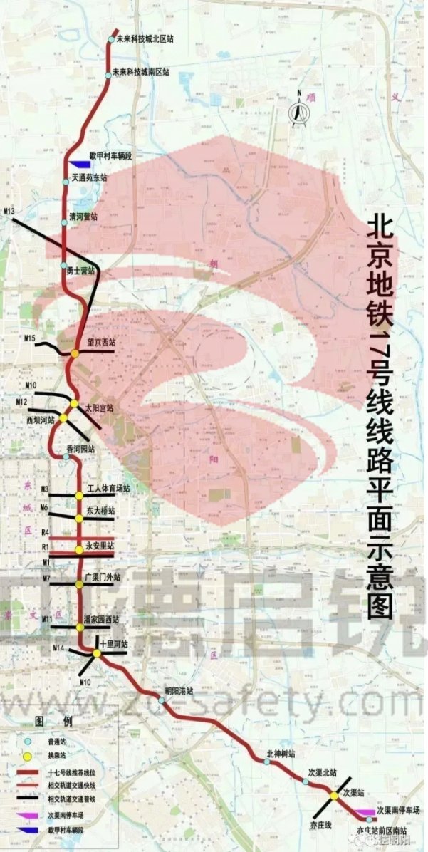 地铁17号线是一条位于北京东部贯穿南北的轨道交通干线。据北京市重大项目办介绍,计划今年年底开通的北段(未来科技城北—工人体育场)呈南北走向,自未来科技城北站出发,经未来科技城南区、天通苑东、清河营、勇士营、望京西、太阳宫、西坝河、香河园至工人体育场站。