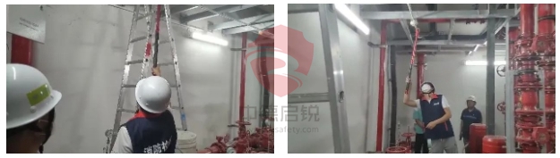 中德启锐深入各站点进行现场“把脉”,全覆盖消防查验工程资料、建筑平面布置、耐火等级、安全疏散、装修材料、消防设备设施、消防产品、消防系统功能实现及消防联动功能等内容,确保工作的高质和高效。