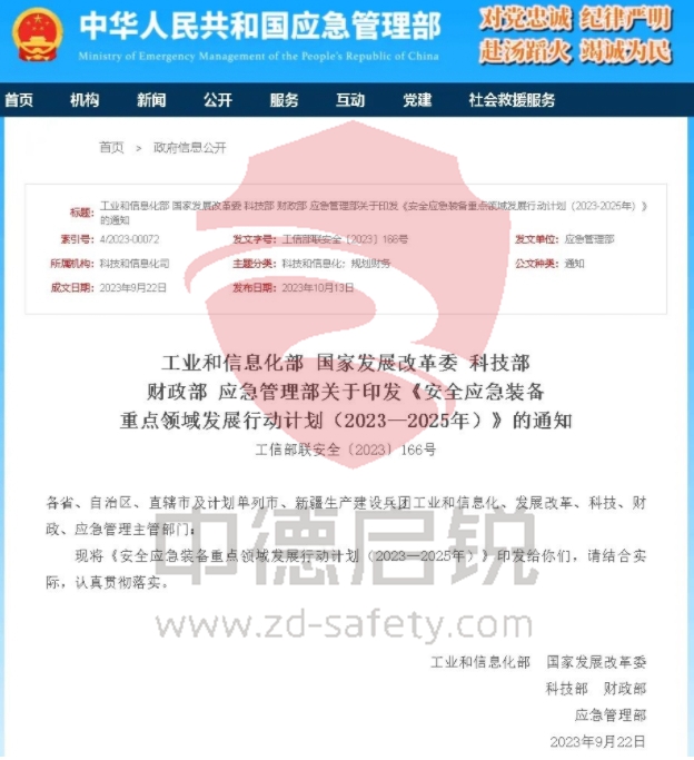 近日,工业和信息化部、国家发展改革委、科技部、财政部、应急管理部等五部门联合印发《安全应急装备重点领域发展行动计划(2023—2025年)》,明确安全应急装备重点领域发展任务,促进安全应急产业高质量发展。