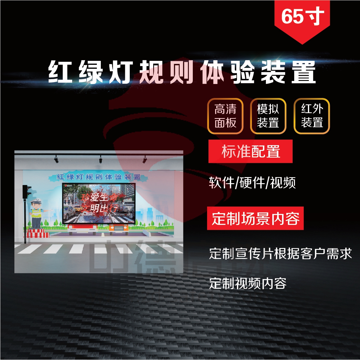 红绿灯规则体验系统由人行红绿灯、高清仿真视频、人体感应系统三个部分组成。相比于传统的交通知识讲解更加真实,极大减少了人力、物力、精力的消耗,不受时间、地点的限制,与现有科技手段相结合,是一种全新、高效、寓教于乐的交通教育系统。 用户通过探索和实践,将枯燥科普知识与创新的体验方式有机结合,人行横道上红绿灯的辨识,通行与停止场景的设置,体验在红灯情况下通行产生后果。从根本上真正认识交通安全的重要性,增强用户的真实感,直观的了解、辨识红绿灯、遵守交通规则,刺激用户的求知欲,潜移默化中提高安全意识,培养应急能力。
