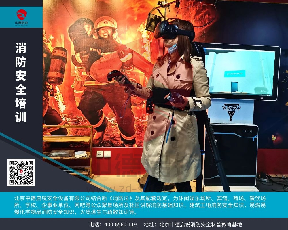 中德启锐VR+消防”沉浸式灭火体验设备把现实生活中的消防案例还原,体验者只需带上VR设备,就可身处“火灾现场”。该设备场景还可以应用在写字楼、厂房、学校、大型商场、家庭、高层建筑、科技馆、体验馆、消防部门以及企事业单位的消防演练。